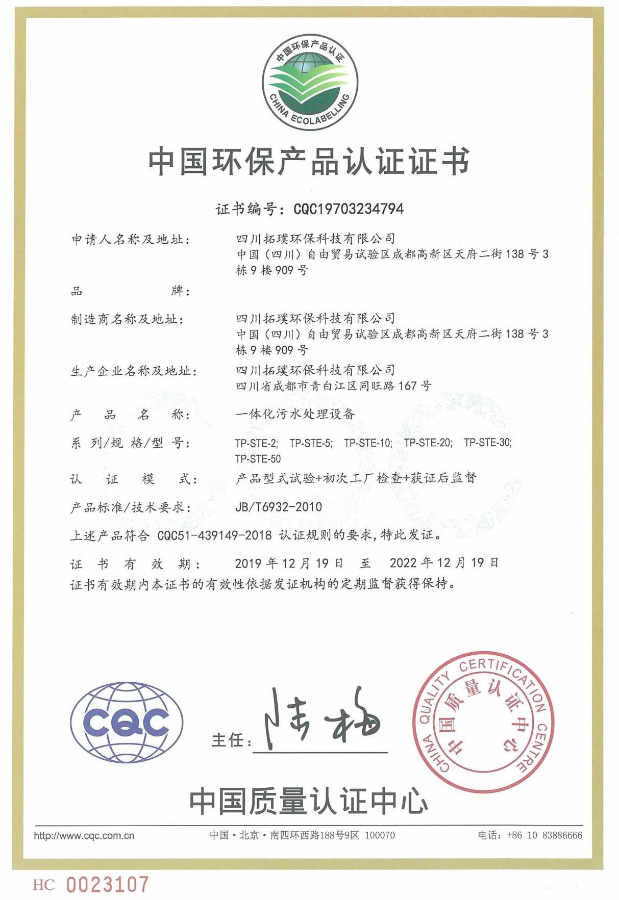 中國環(huán)保產(chǎn)品認證證書
