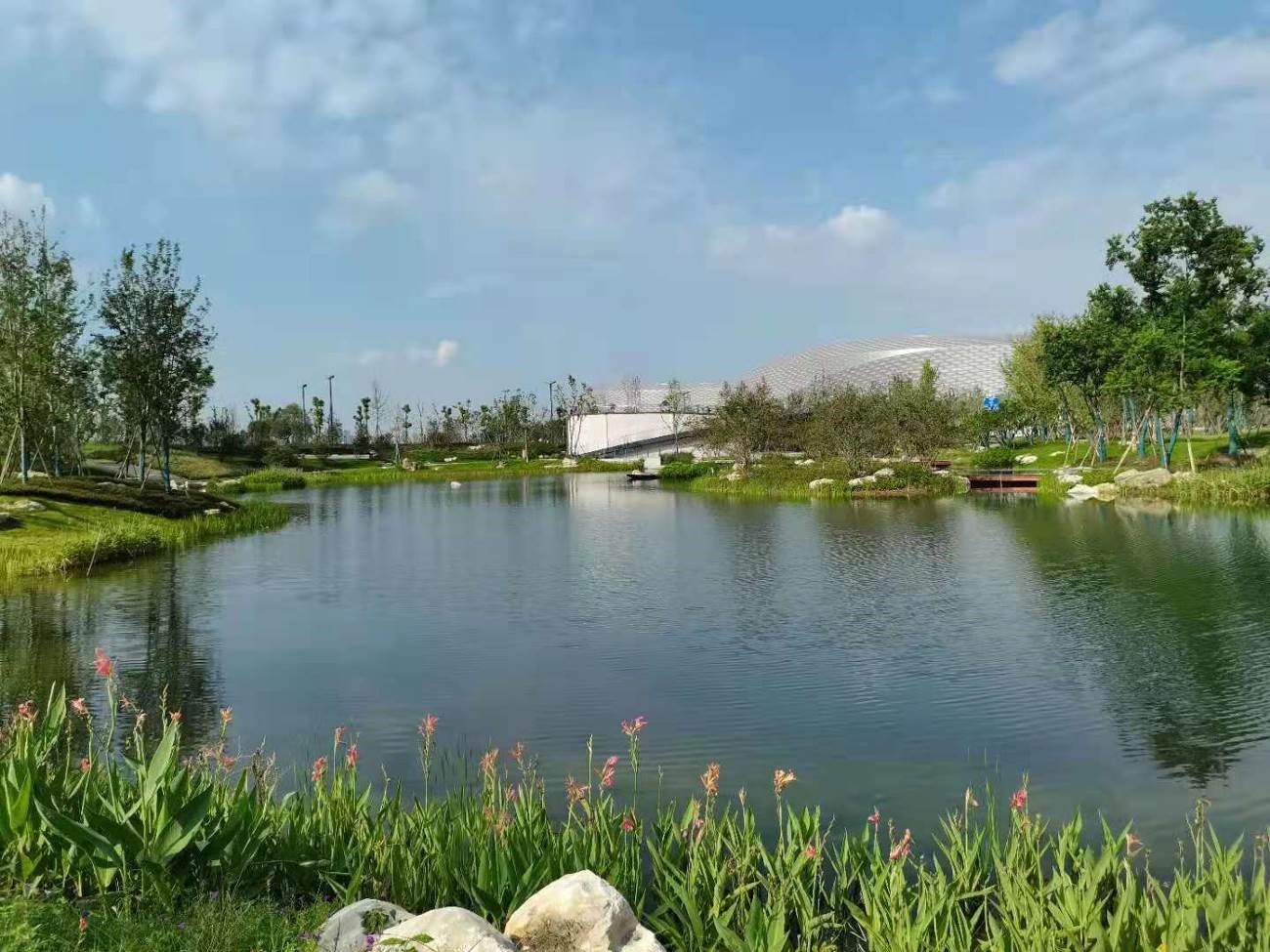 長隆集團(tuán)總部大樓外部景觀以嶺南園林為原型,嵌入長隆文化元素, 打造具有嶺南特色的現(xiàn)代企業(yè)文化園林景觀體系。景觀設(shè)計(jì)著力解決建筑、自然、人以及動物之間的和諧相處。 將“網(wǎng)紅標(biāo)志景觀”、現(xiàn)代生態(tài)景觀、嶺南精品園、半室內(nèi)山水、動物自然棲息地以及員工休閑地集合與空間之中,打造生態(tài)立體辦公超級綜合體。